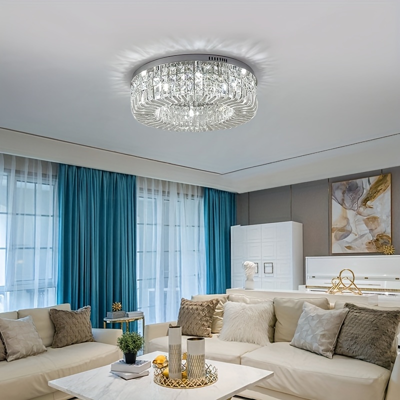 1 Luxury-Style Modern Crystal Round Ceiling Lamp - Three-color Variable Lighting - Suitable for Furniture Lighting Decoration in Living Rooms, Bedrooms, Dining Rooms and Other Places. This product does not come with wall switches or remote controls.