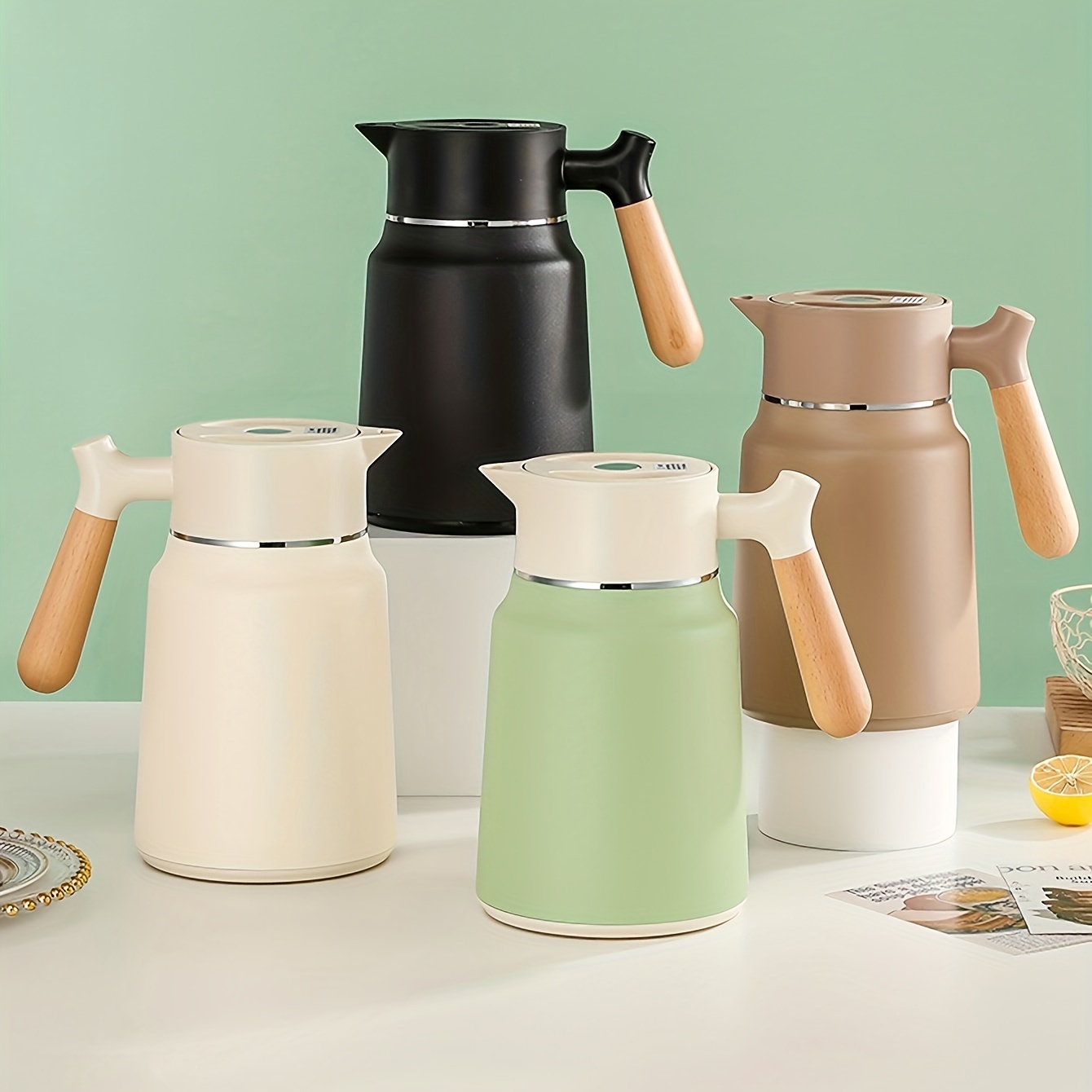 1-Pack Stainless Steel Thermal Carafe 1.5L - Double-Wall Vacuum Insulated Hot Water Pot, Coffee Dispenser, Office Tea Flask, Heat Retention, Uncharged, No Battery Needed