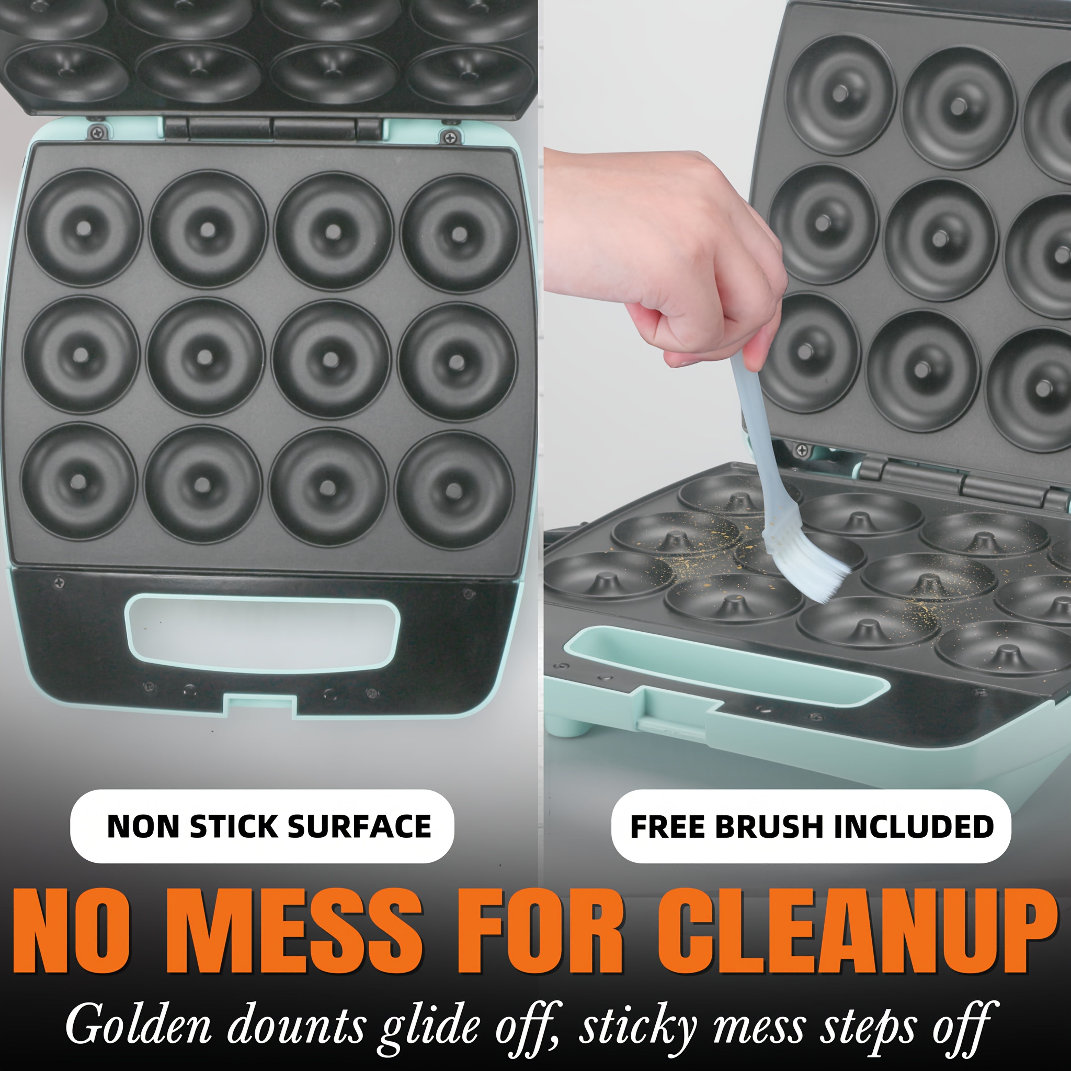 12X2.2 Inch Mini Electric Donut Maker - Aqua Blue, Multi-Donut Maker for Kids & Family, Bite-Sized Donuts, Perfect for Snacks & More, Donut Making Machine Donut Maker Donut Making Equipment, Kitchen Appliance