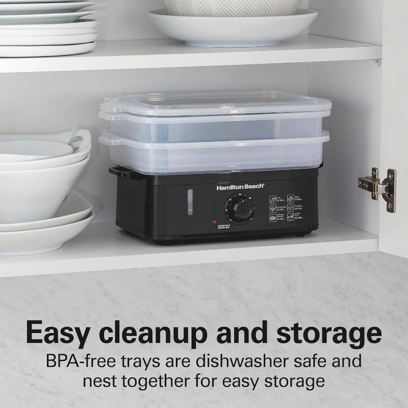 3-Tier Food Steamer & Rice Cooker Combo - 9.5 Quart Large Capacity Multi-Layer Steamer with Auto Shut-Off, Stackable Bowls, Dishwasher Parts, Healthy Quick Cooker for Vegetables, Seafood, Rice, Dumplings (Black)