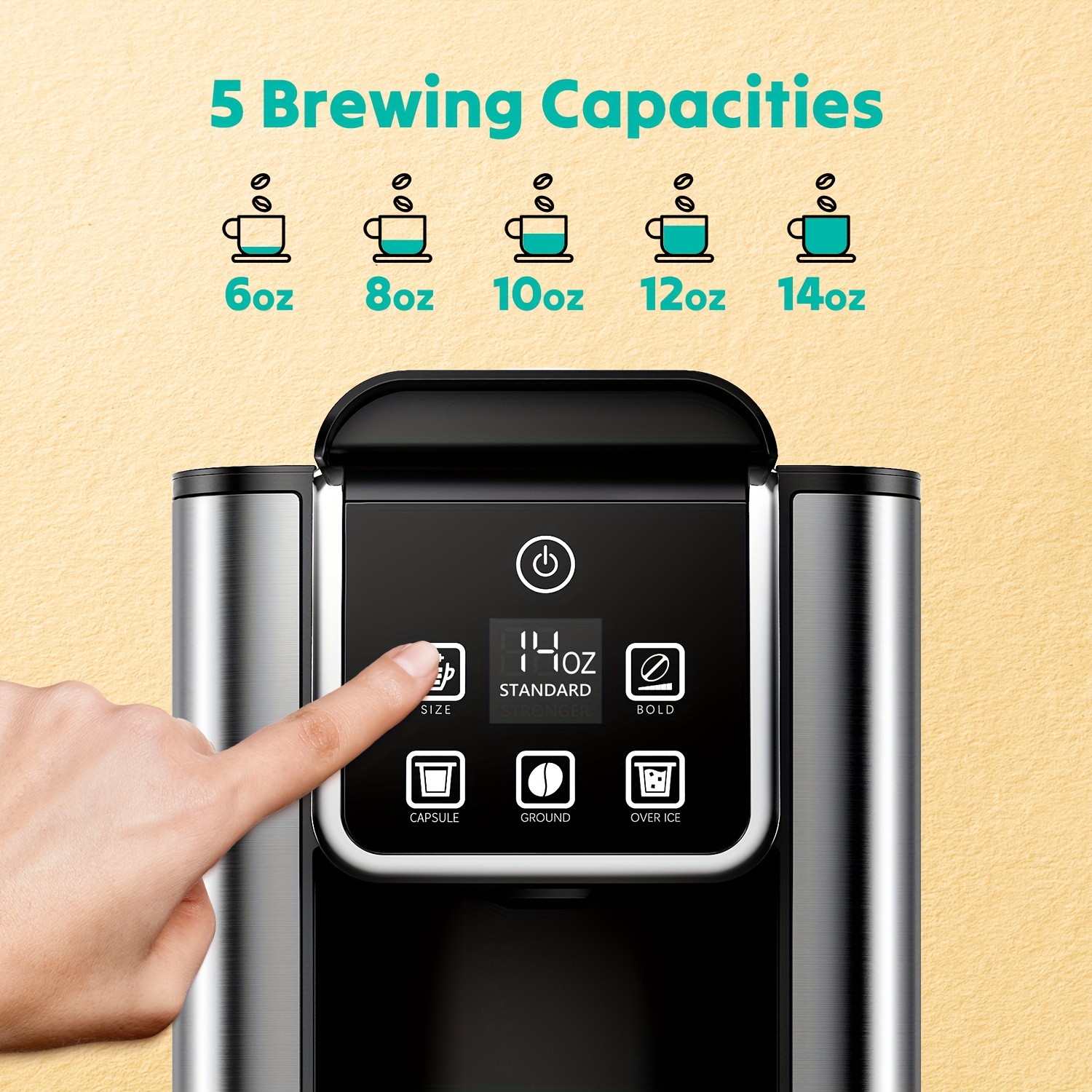 Hot & Iced Coffee Maker with Bold Setting, Single Serve Coffee Maker for K Cup and Grounds, 6-14 Oz Brew Sizes, 50 Oz Removable Water Tank, One Cup Coffee Machine with Reusable Filter, Black