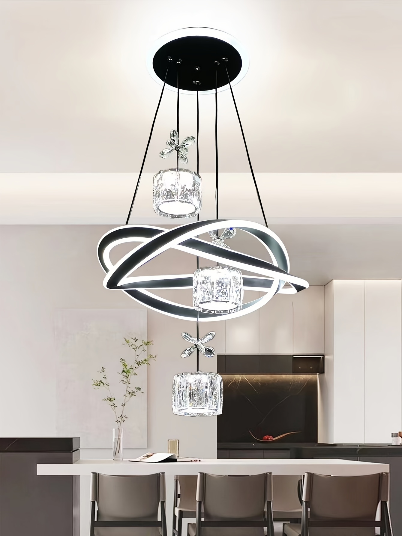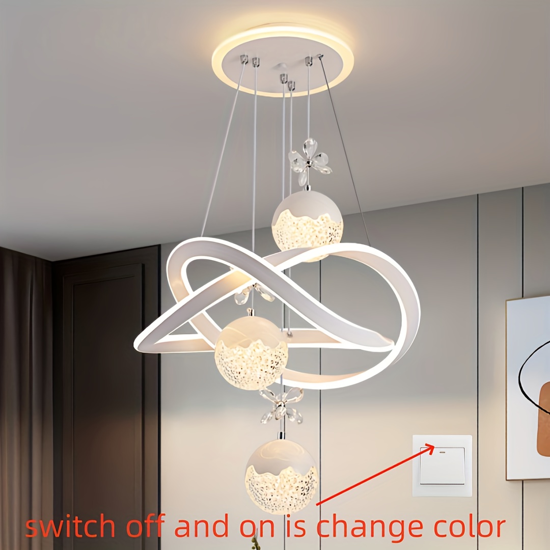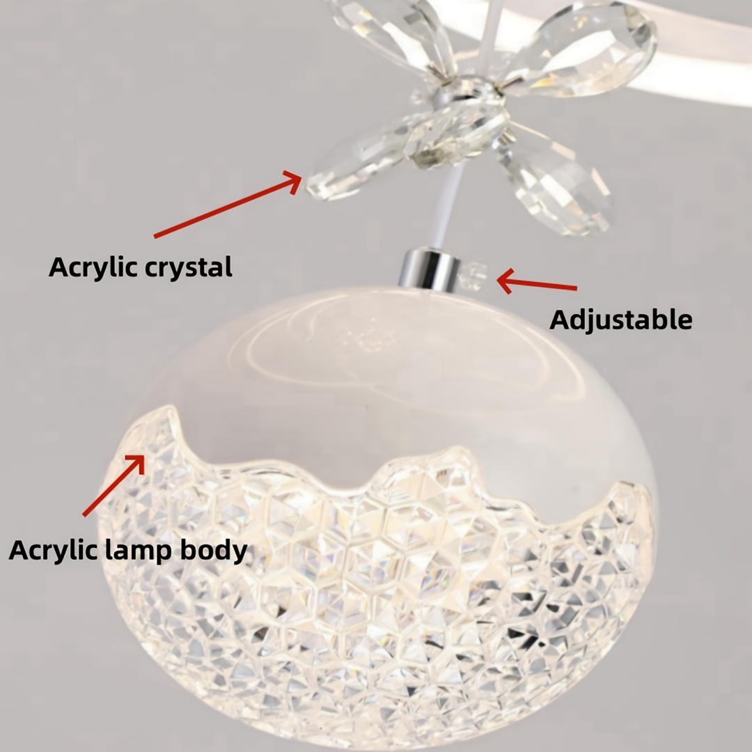 Modern 3-Light Acrylic Pendant Fixture with 3-Color Dimming (3000K/6000K/4500K) - Sleek Metallic Finish, Space-Inspired Design for Dining Room, Bedroom, or Bar - Hardwares Included, Remote Control Not Included