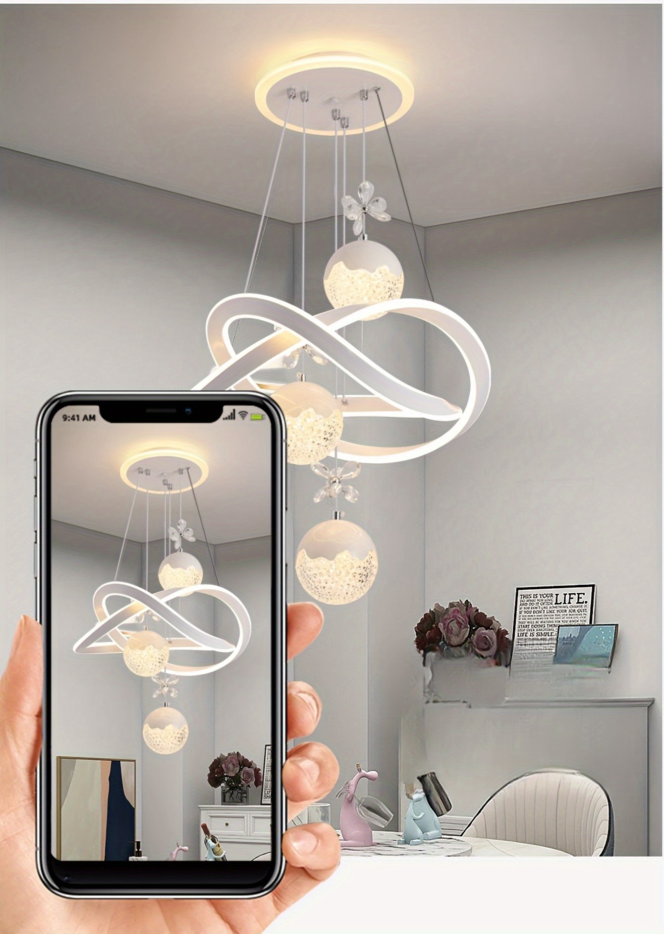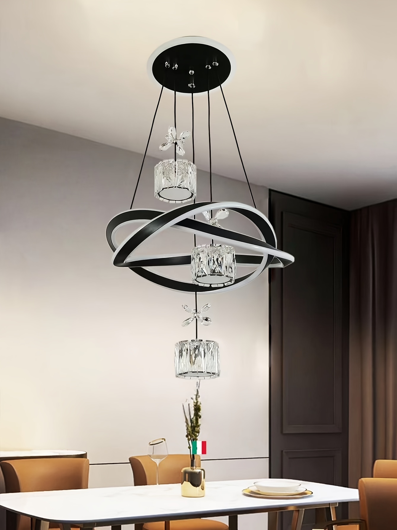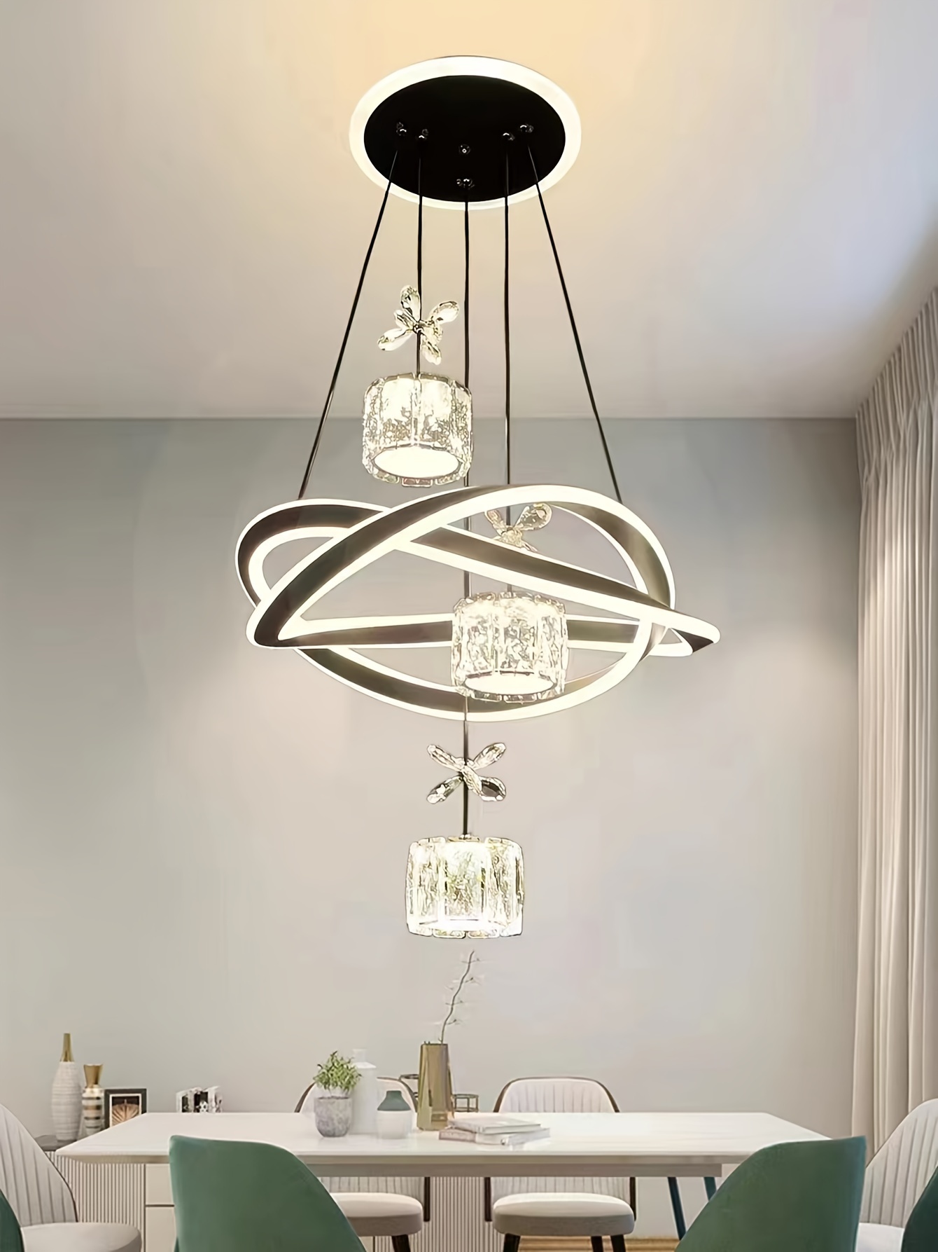 Modern 3-Light Acrylic Pendant Fixture with 3-Color Dimming (3000K/6000K/4500K) - Sleek Metallic Finish, Space-Inspired Design for Dining Room, Bedroom, or Bar - Hardwares Included, Remote Control Not Included