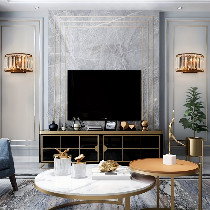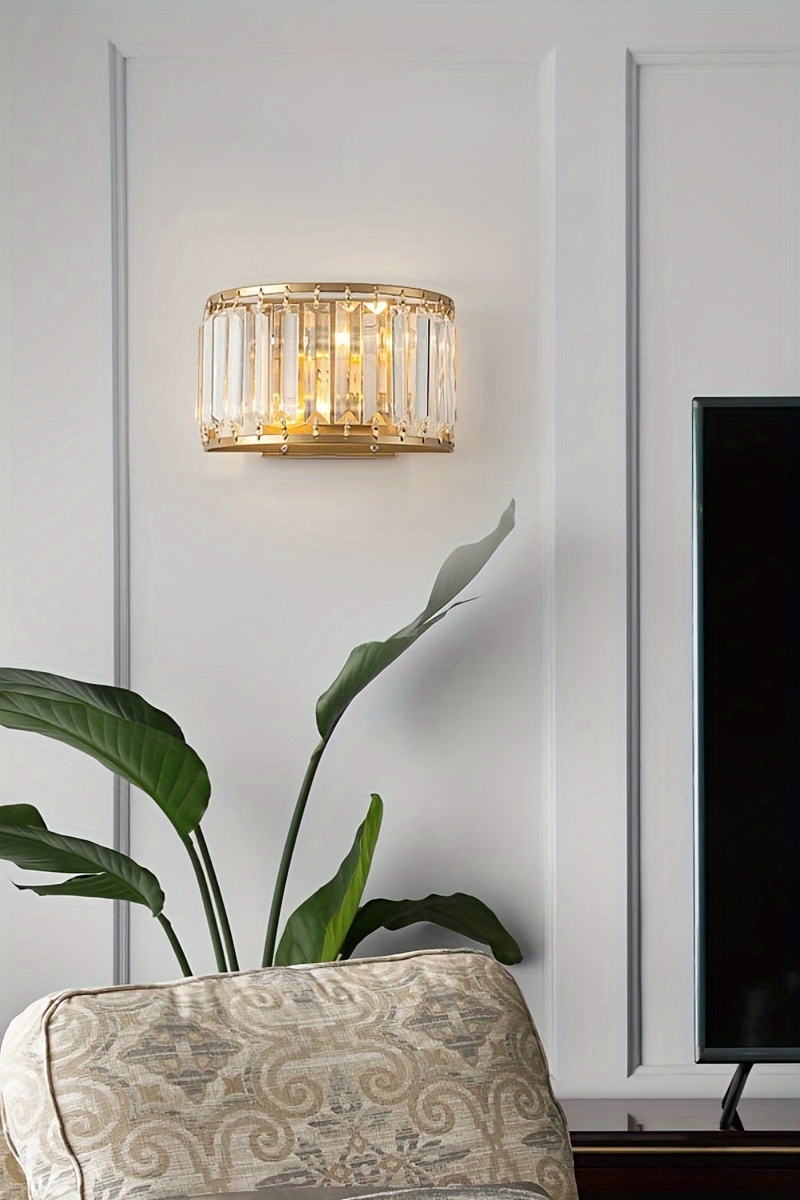 Modern Luxury Elegant Crystal Semi-Circular LED Wall Light - 3-Color Adjustable, Metal Frame, Semi-Flush Mount for Living Room, Bedroom, Study, Hallway, Bedside - Hardwired 110-240V, No Battery Needed, Bedroom Lighting, Contemporary Lighting, Sleek Design