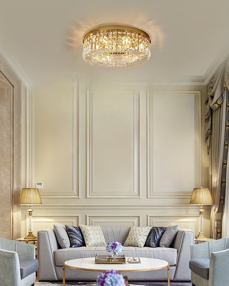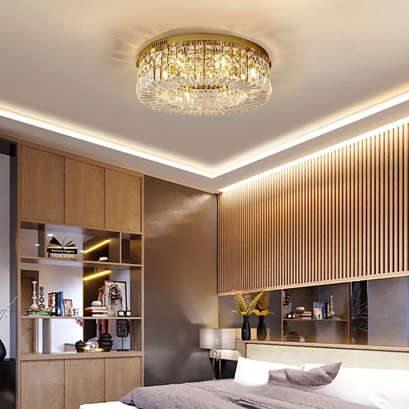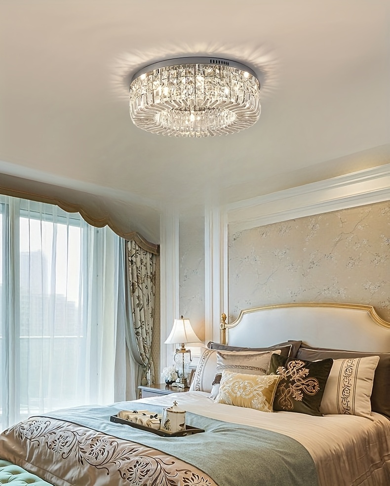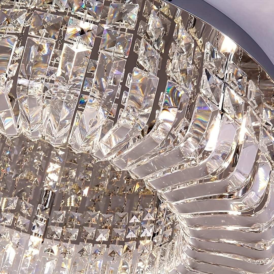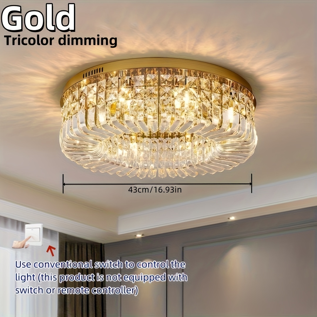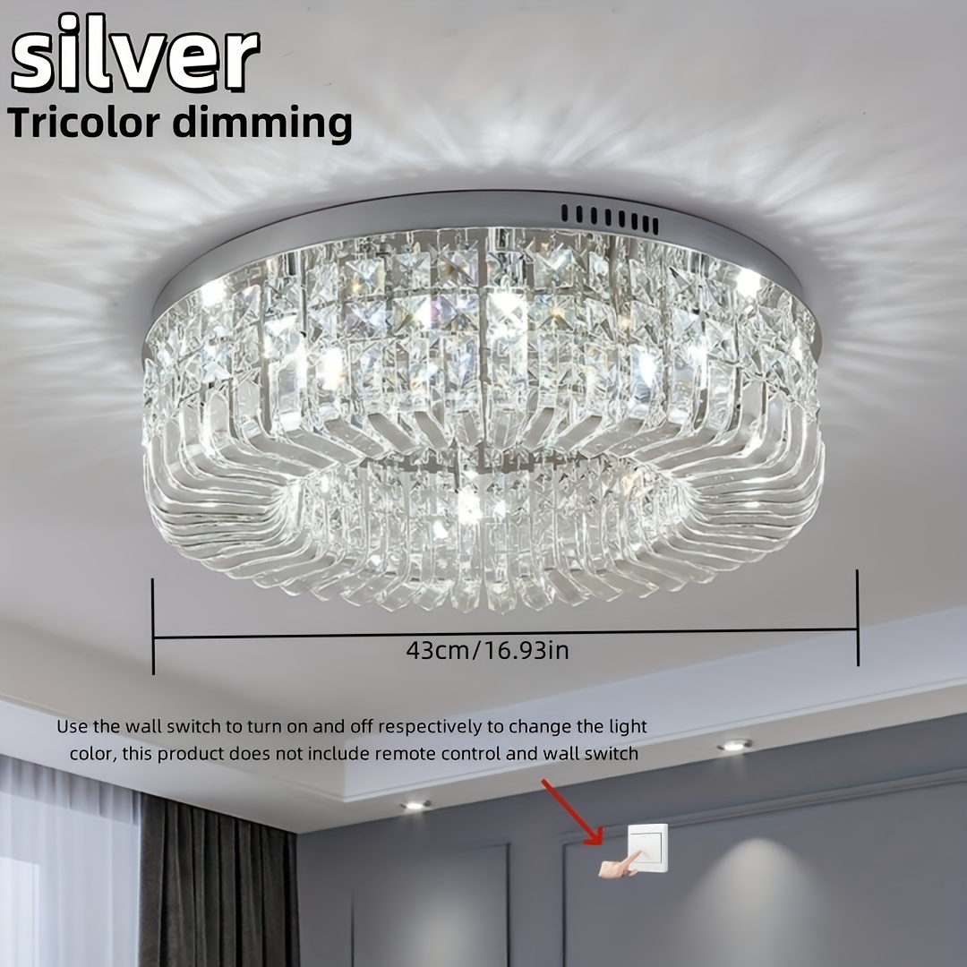 1 Luxury-Style Modern Crystal Round Ceiling Lamp - Three-color Variable Lighting - Suitable for Furniture Lighting Decoration in Living Rooms, Bedrooms, Dining Rooms and Other Places. This product does not come with wall switches or remote controls.