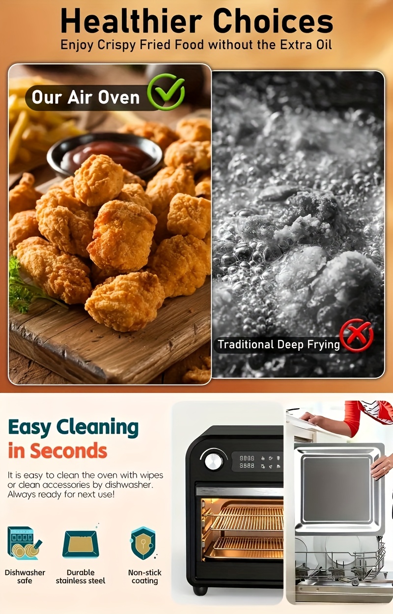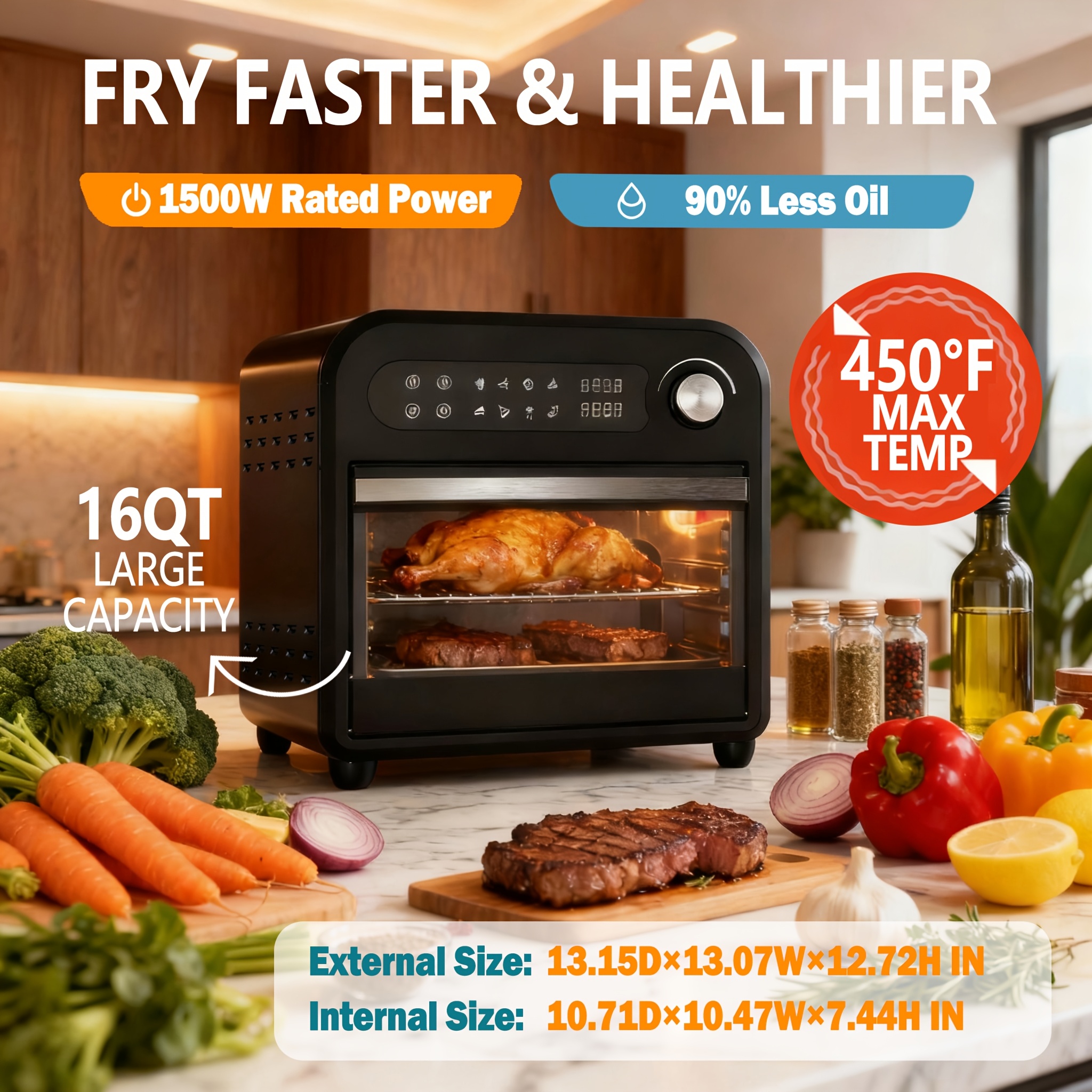 16QT Large Capacity Digital Air Fryer Oven Toaster Combo with 360° Hot Air Circulation, 1500W Fast Preheating & Cooking, Digital Display & Precise Temperature Control, Transparent Door with Window, Healthy Low-Oil Cooking Intelligent Chip Technology