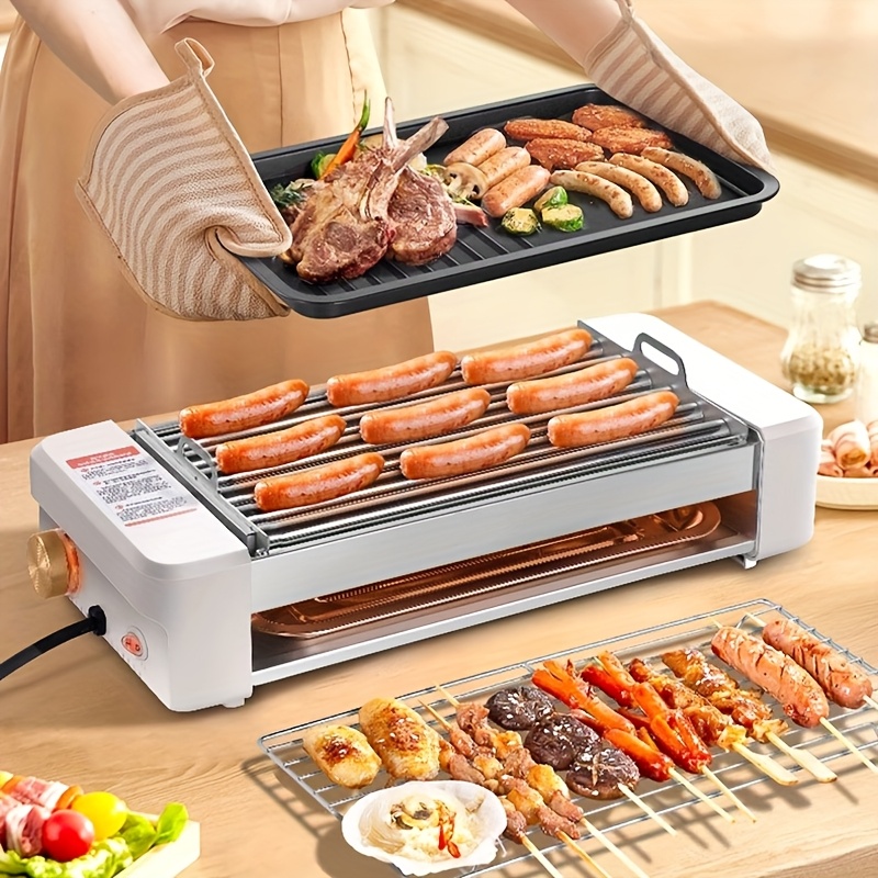 4-in-1 Multi-functional Sausage Grill, With Three-hand Dish And Silicone Oil Brush, Silicone Grill Holder, Non-stick Pan, Countertop, Adjustable Temperature, Detachable Panel, Easy To Clean, Suitable For Kitchens And Dormitories
