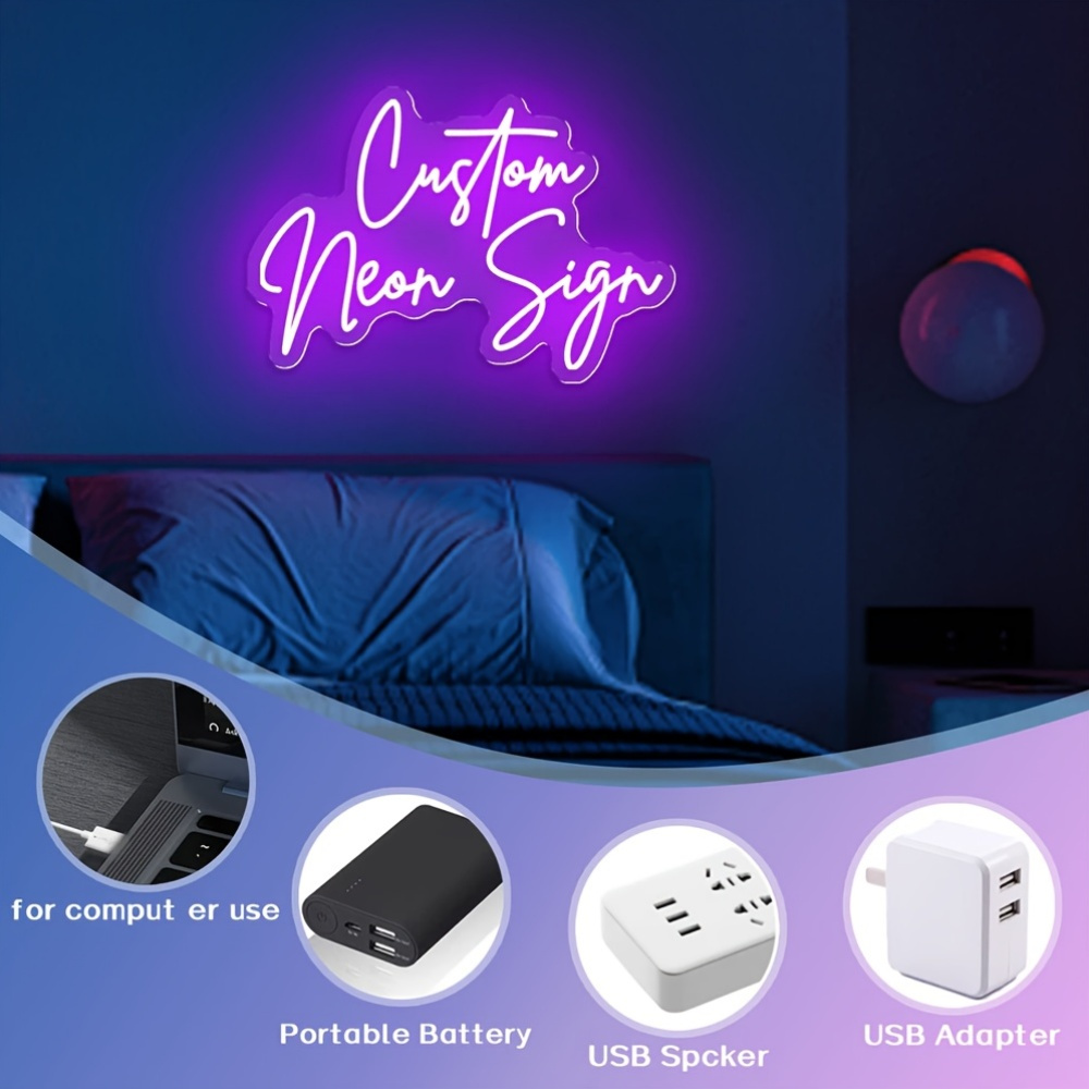 Custom Double Row Double Font Neon, Personalized Text LED Neon, USB Powered, Wall Hanging, Dimmable, Plastic Material, Switch Control, No Battery Required