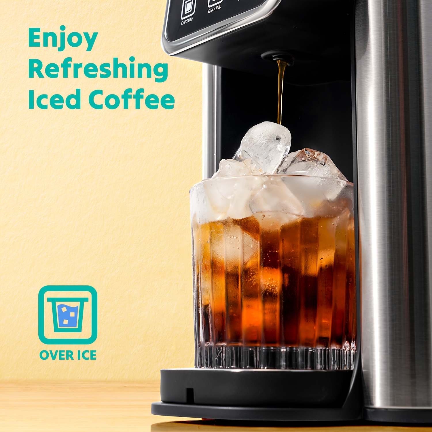 Hot & Iced Coffee Maker with Bold Setting, Single Serve Coffee Maker for K Cup and Grounds, 6-14 Oz Brew Sizes, 50 Oz Removable Water Tank, One Cup Coffee Machine with Reusable Filter, Black