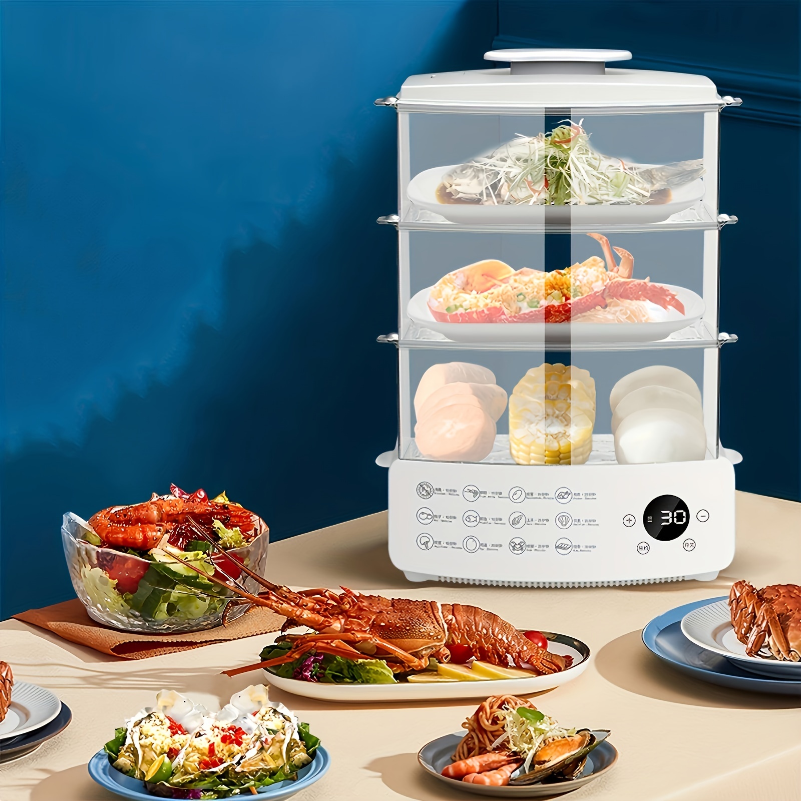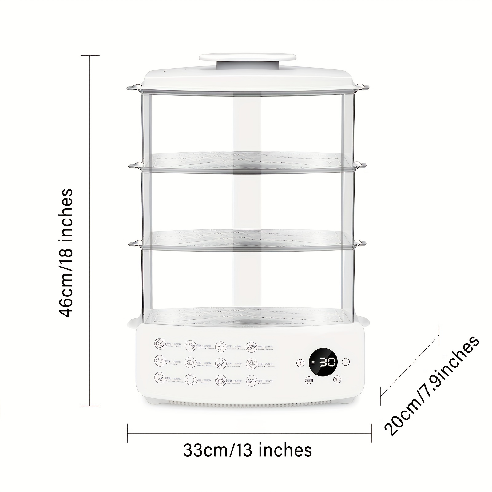 3-Tier Digital Steamer with Auto Shutoff - Fast, Healthy Cooking for Vegetables, Meats & Grains | Stackable Baskets & Timer | 110-130V US Plug