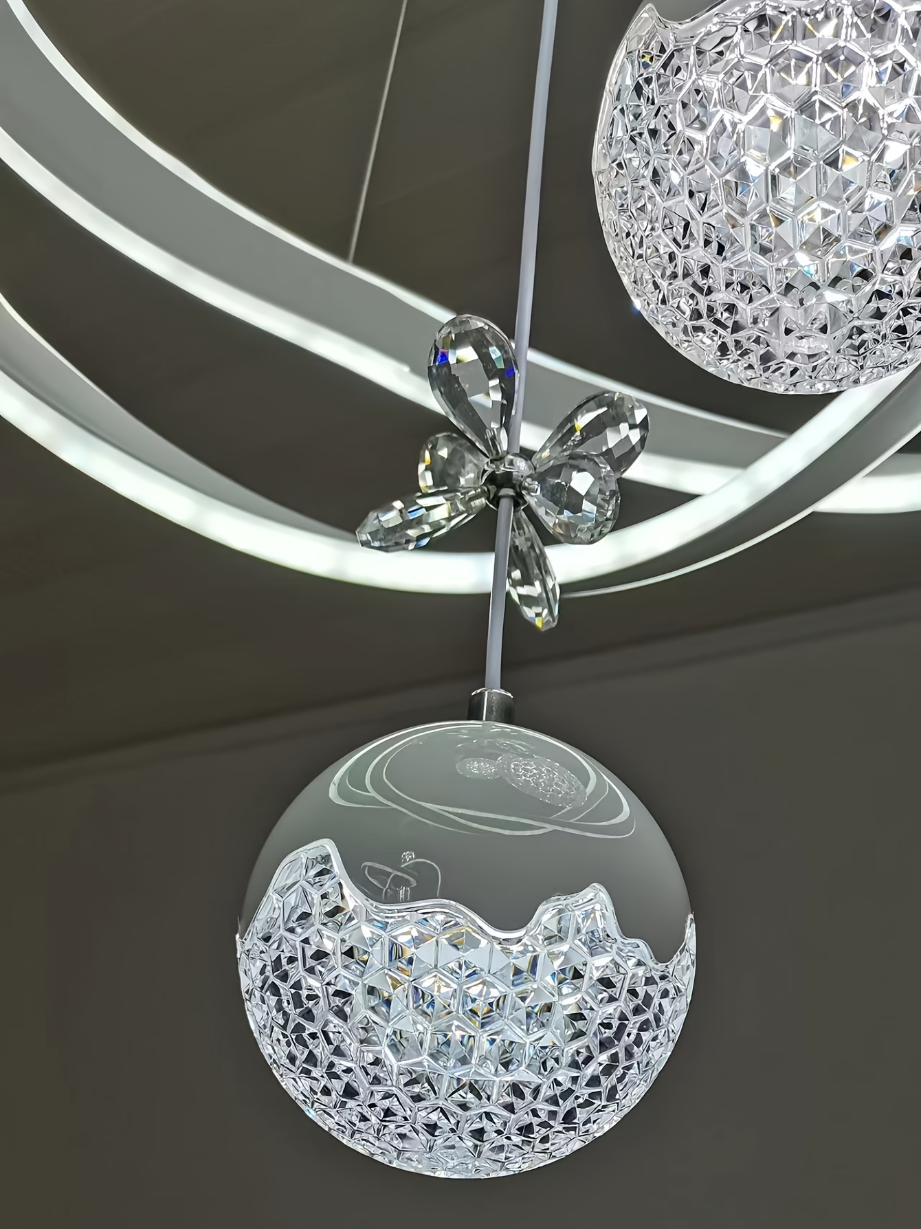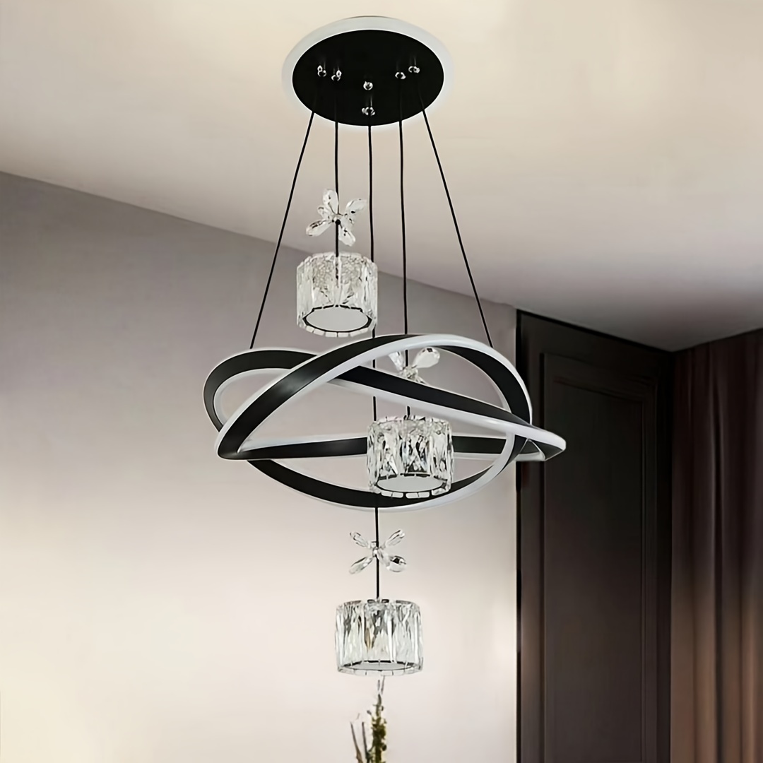 Modern 3-Light Acrylic Pendant Fixture with 3-Color Dimming (3000K/6000K/4500K) - Sleek Metallic Finish, Space-Inspired Design for Dining Room, Bedroom, or Bar - Hardwares Included, Remote Control Not Included