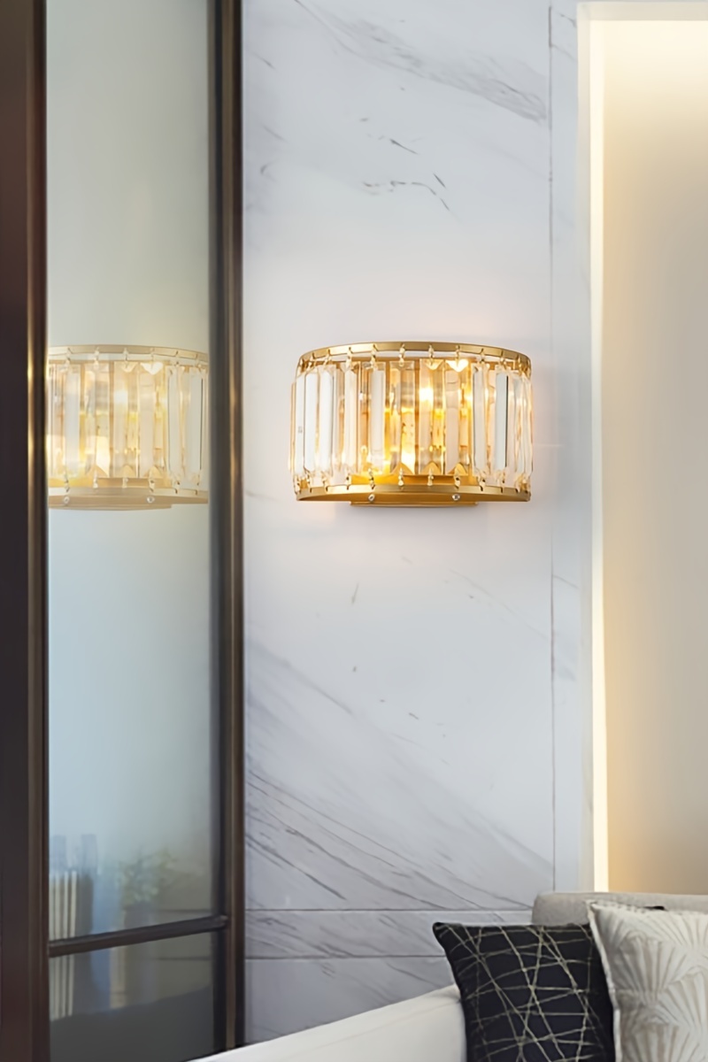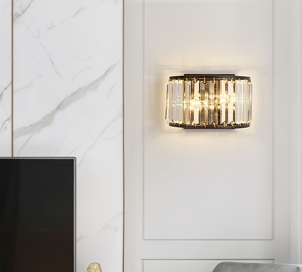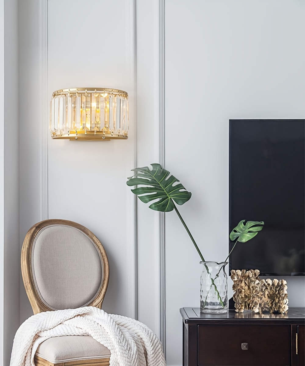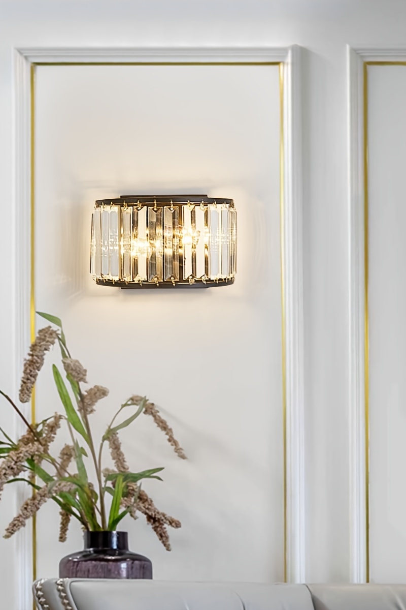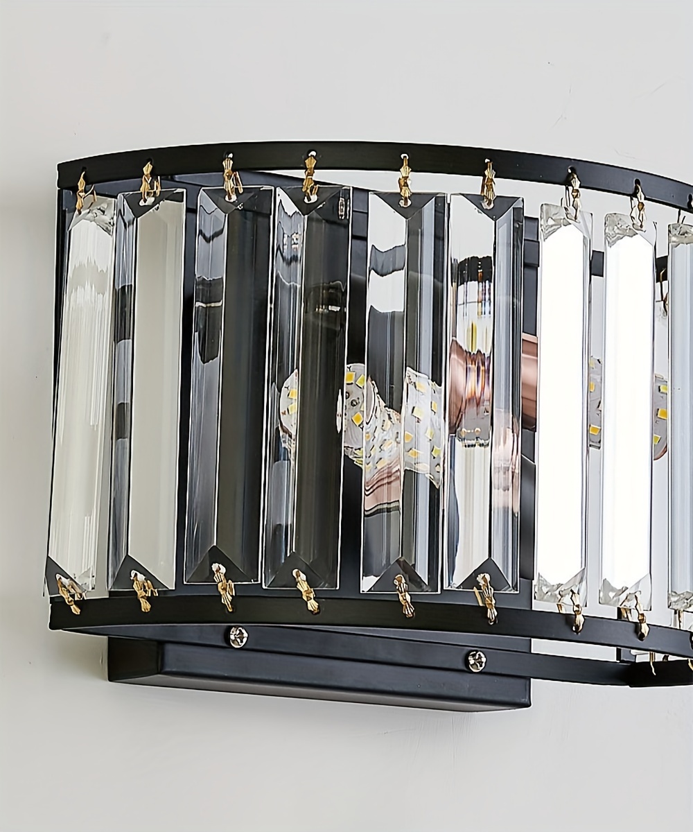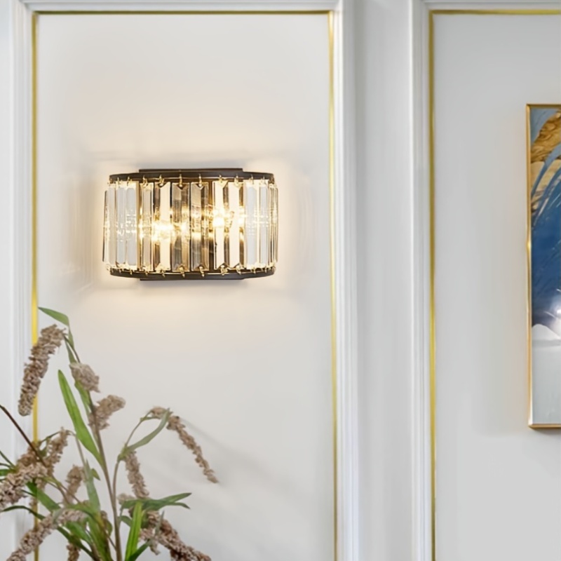 Modern Luxury Elegant Crystal Semi-Circular LED Wall Light - 3-Color Adjustable, Metal Frame, Semi-Flush Mount for Living Room, Bedroom, Study, Hallway, Bedside - Hardwired 110-240V, No Battery Needed, Bedroom Lighting, Contemporary Lighting, Sleek Design